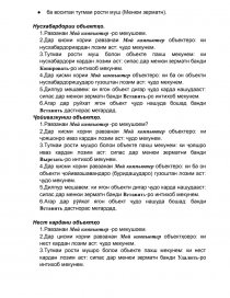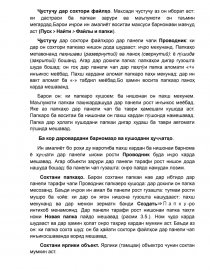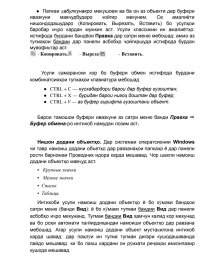 - пахши тугмаи рости муш (щелчок правой кнопкой) – барои даъват кардани менюи зерматн (контекстный) пешбини мешавад;