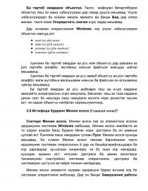Объектҳои асоси ва усулҳои идоракунии MS Windows