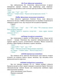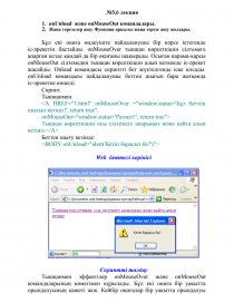 - onMouseOver командасы. Оқиғаны өңдеуші бірнеше командалар