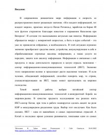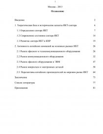 на тему: «Китайский сектор информационно-коммуникационных технологий в конкурентной борьбе на мировом рынке»