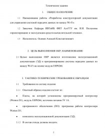 - Наименование работы «Разработка конструкторской документации для управления системой передачи данных по каналу Wi-Fi».