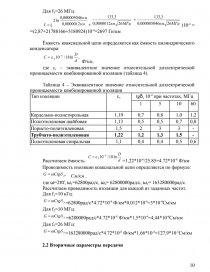 В таблице 1 задаются тип используемого кабеля (коаксиальный или симметричный), его емкость, диаметр проводников, материал и конструкция изоляции жил, материал оболочки кабеля.