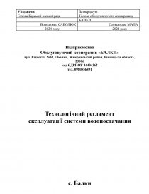 Технологічний регламент експлуатації системи водопостачання с. Балки