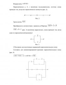 Выключатели [pic 21] и [pic 22] проводят ток, когда переключатель разомкнут, и не проводят, когда замкнут. Они включены последовательно, поэтому схема проводит ток, когда оба переключателя разомкнуты, и не проводит, когда один из них замкнут. К их соединению включен параллельно переключатель [pic 23]. Переключатель [pic 24] включен последовательно к соединению [pic 25].