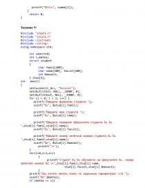 Задание 5: написать программу, осуществляющую поиск среди структур student структуру с заданными параметрами (фамилией, именем и т.д.).