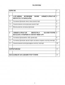 2 | АНЫҚТАЛМАҒАН ИНТЕГРАЛ ҚАСИЕТТЕРІН ҚОЛДАНА ОТЫРЫП ЕСЕПТЕР ШЫҒАРУ | 8 |