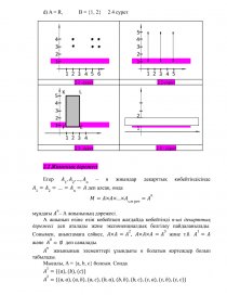 Мысал. A = {1, 2, 3} және B = {2, 3, 4} жиындары берілсін. Сонда [pic 10] жиыны келесі тоғыз элементтен тұрады: (1, 4) (2, 4) (3, 4) (1, 3) (2, 3) (3, 3) (1, 2) (2, 2 ) (3, 2).