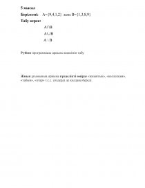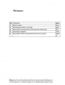 6 | Жиындарға Python программасында мысал келтіру | 10-14 |