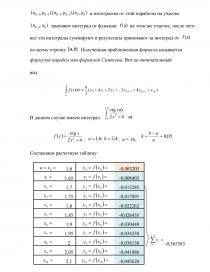 Способ № 3: метод парабол. В этой ситуации отрезок [pic 11] разбивается на [pic 12] равных частей: [pic 13], где [pic 14][pic 15]. На участках [pic 16], функцию [pic 17]заменяют на параболу, которая проходит через точки [pic 18] и интегралом от этой параболы на участке [pic 19] заменяют интеграл от функции [pic 20] на этом же участке, после чего все эти интегралы суммируют и результаты принимают за интеграл от [pic 21] по всему отрезку [pic 22]. Полученная приближенная формула называется формулой парабол или формулой Симпсона. Вот ее окончательный