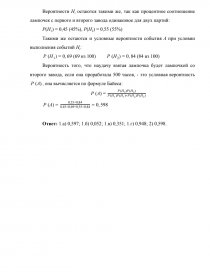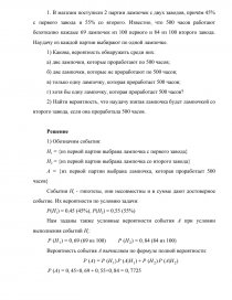 1. В магазин поступили 2 партии лампочек с двух заводов, причём 45% с первого завода и 55% со второго. Известно, что 500 часов работают безотказно каждые 69 лампочек из 100 первого и 84 из 100 второго завода. Наудачу из каждой партии выбирают по одной лампочке.