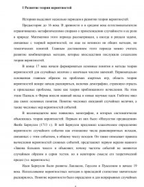 История теории вероятностей имеет много уникальных особенностей. Во-первых, в отличие от других разделов математики, возникших примерно в то же время (например, математического анализа и аналитической геометрии), теория вероятностей по сути не имеет ни древних, ни средневековых предшественников и является полностью созданием Нового времени. Долгое время теория вероятностей считалась чисто экспериментальной наукой, а не «полной математикой». Ее строгое обоснование не было разработано до 1929 г. Сегодня теория вероятностей занимает одно из первых мест в прикладных науках по широте своих приложений.