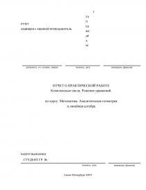 ОТЧЕТ О ПРАКТИЧЕСКОЙ РАБОТЕ Комплексные числа. Решение уравнений. по курсу: Математика. Аналитическая геометрия и линейная алгебра |