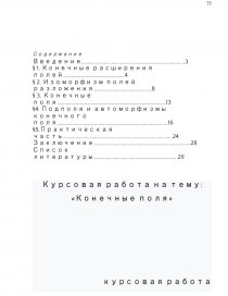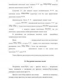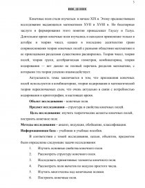Цель исследования: изучить теоретические аспекты конечных полей, построить конечное поле. Методы исследования – анализ, индукция, обобщение, классификация. Информационная база – учебники и учебные пособия.