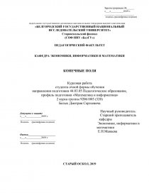Допущена к защите «___»____________2019 г. ________ ____________________ Подпись (расшифровка подписи) | Научный руководитель: Старший преподаватель кафедры Экономики, информатики и математики Е.Н.Манаева |