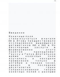 Конечные поля стали изучаться в начале XIX в. Этому предшествовали исследования выдающихся математиков XVII и XVIII в. Но бесспорные заслуги в формировании этого понятия принадлежат Гауссу и Галуа. Длительное время конечные поля изучались и находили применение только в алгебре и теории чисел, однако в последние десятилетия грани соприкосновения теории конечных полей с разными областями математики и ее прикладными разделами существенно расширились. Теория чисел, теория полей, теория групп, алгебраическая геометрия, комбинаторика, теория кодирования — вот далеко не полный перечень разделов математики, с которыми эта теория успешно взаимодействует.