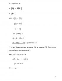 г) точку N пересечения медианы AM и высоты CH. Выполнить чертеж (в системе координат).