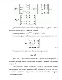 Таким образом, прямой ход метода Гаусса без перестановок можно рассматривать как процесс вычисления LU-разложения матрицы системы, на k-м шаге которого определяются элементы k-го столбца матрицы L k-й строки матрицы U