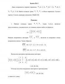 Даны координаты вершин пирамиды [pic 1](4; 2; 5), [pic 2](0; 7; 2), [pic 3](0; 2; 7), [pic 4](1; 5; 0). Найти площадь грани [pic 5][pic 6][pic 7] и объем пирамиды. Сделать чертеж. Сделать проверку решения в MathCAD.