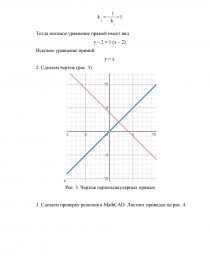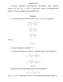 Составить уравнение перпендикуляра, проходящего через середину отрезка АВ, если А(1; 3), В(3; 1). Выполнить чертеж, иллюстрирующий решение. Сделать проверку решения в MathCAD.
