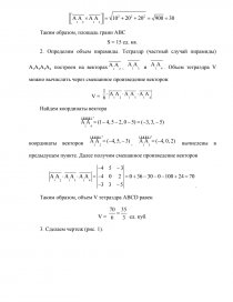 2. Определим объем пирамиды. Тетраэдр (частный случай пирамиды) A1А2А3А4 построен на векторах[pic 19], [pic 20] и [pic 21]. Объем тетраэдра V можно вычислить через смешанное произведение векторов: