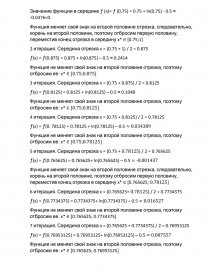 Функция не меняет свой знак на второй половине отрезка, поэтому отбросим ее: x* ∈ [0.765625; 0.76953125]
