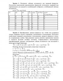 Задача 1. Построить таблицу истинности для заданной формулы. Результаты выполнения предписанных формулой логических операций над переменными для каждой из комбинаций отобразить в обобщённой таблице истинности.