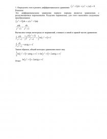 1. Определить тип и решить дифференциальное уравнение: [pic 2].