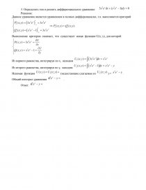 Данное уравнение является уравнением в полных дифференциалах, т.к. выполняется критерий