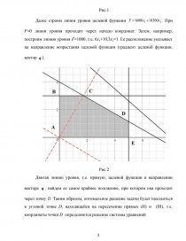 Двигая линию уровня, т.е. прямую, целевой функции в направлении вектора [pic 9], найдем ее самое крайнее положение, при котором она проходит через точку D. Таким образом, оптимальное решение задачи будет находиться в угловой точке D, находящейся на пересечении прямых (II) и (III), т.е. координаты точки D определяются решение системы уравнений