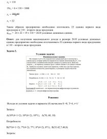 Таким образом предприятию необходимо изготовлять 22 единиц первого вида продукции и 110 – второго вида продукции.