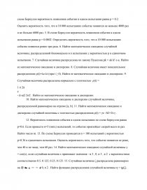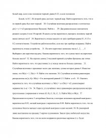 1. Элементы комбинаторики в теории вероятностей: перестановки, размещения, сочетания. Формула бинома. Примеры. 2. Наивное определение вероятности, его обоснование (предельная теорема Бернулли). 3. Схема испытаний Бернулли, распределение Бернулли. Математическое ожидание и дисперсия случайной величины в схеме Бернулли. 4. Наиболее вероятное число появлений события в схеме Бернулли. 5. Понятие о вероятностном пространстве, мере, вероятности. 6. Биномиальное и полиномиальное распределение вероятностей. 7. Правило сложения и умножения вероятностей. 8. Полная группа событий, формула полной вероятности. 9. Условная вероятность, правило умножения вероятностей. 10. Равномерное распределение. Вероятность попадания в заданную область. Математическое ожидание и дисперсия при равномерном распределении. 11. Предельная теорема Ляпунова. Нормальное распределение, математическое ожидание и дисперсия нормально распределенной случайной величины. 12. Распределение Пуассона. Математическое ожидание и дисперсия случайной величины, распределенной по закону Пуассона. Вероятности отказов. 13. Локальная формула Муавра-Лапласа, ее применение. 14. Интегральная формула Муавра-Лапласа, ее применение. 15. Распределение времени безотказной работы. Показательное распределение, математическое ожидание и дисперсия случайной величины. Функция надежности. 16. Функция распределения, плотность распределения, их взаимосвязь. 17. Математическое ожидание, его свойства. Неравенство Маркова. 18. Дисперсия, ее свойства. Стандарт. Неравенство Чебышёва. 19. Функция (неслучайная) случайной величины, ее математическое ожидание и дисперсия. 20. Функция и плотность распределения функции от случайной величины. 21. Системы случайных величин, случайный вектор, плотность и функция распределения. Условные распределения. 22. Ковариация и корреляция двух случайных величин. Свойство коэффициента корреляции. 23. Математическое ожидание случайного вектора. 24. Ковариация и корреляция случайного вектора. Дисперсии координат случайного вектора. 25. Распределение Стьюдента, применение. 26. Распределение χ2 Пирсона. 27. Распределение Фишера.