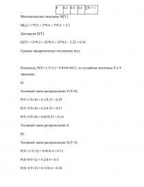 Поскольку, P(X=-1,Y=1) = 0.05≠0.4•0.2, то случайные величины X и Y зависимы.