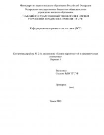 Контрольная работа № 2 по дисциплине «Теория вероятностей и математическая статистика»