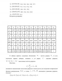 Решение: Объем данной выборки (то есть число объектов в выборке) равен n = 59. Выберем из имеющихся результатов наблюдения максимальную [pic 22] и минимальную [pic 23] варианты: [pic 24] тогда размах выборки [pic 25] Разделим весь полученный диапазон наблюдаемых значений на 10 равных частей. Получим разряды [pic 26] причем длина каждого разряда равна [pic 27] Распределим компоненты выборки по десяти разрядам длины [pic 28]