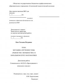 Методика изучения темы "Равенство.неравентсов" в начальном курсе математики
