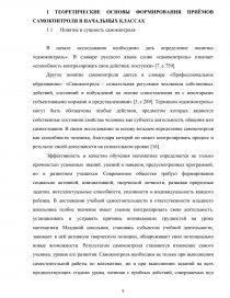 1.2 Особенности формирования приёмов самоконтроля у обучающихся в начальной школе…………………………………………………………….... | 9 |