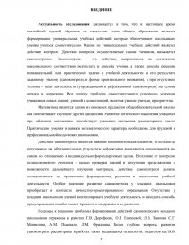 Актуальность исследования заключается в том, что в настоящее время важнейшей задачей обучения на начальном этапе общего образования является формирование универсальных учебных действий, которые обеспечивают школьникам умение учиться самостоятельно. Одним из универсальных учебных действий является действие контроля. Действие контроля, осуществляемое самим учеником, называется самоконтролем. Самоконтроль – это действие, направленное на достижение максимального соответствия результата и способа учения, а также способа решения познавательной или практической задачи в учебной деятельности и его результата заданному эталону (самоконтроль в форме произвольного внимания), а при отсутствии эталона – цели деятельности (упреждающий и рефлексивный самоконтроль) на основе оценки и коррекции. Вот почему проблема самостоятельного успешного усвоения учащимися новых знаний, умений и компетенций, включая умение учиться, приоритетна.