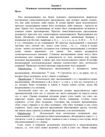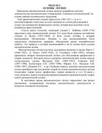 Предметом математической логики является разработка методов доказательства математических утверждений с помощью умозаключений на основе законов человеческого мышления.