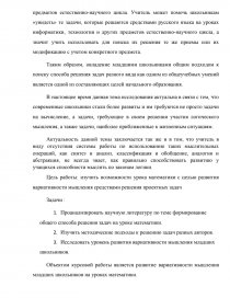 Объектом курсовой работы является развитие вариативности мышления младших школьников на уроках математики.