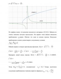 По графику видно, что решение находится в интервале [0.2;0.4] . Найдем его точное значение методом касательных. На первом этапе найдем начальное приближение . Обычно это один из концов отрезка. Начальное приближение должно удовлетворять следующему условию: