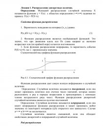 Определение. Случайная величина называется дискретной, если она может принимать конечное или счетное число значений, которые можно расположить в ряд в порядке возрастания и пронумеровать с помощью членов натурального ряда чисел. Функция распределения дискретной случайной величины является кусочно-постоянной.
