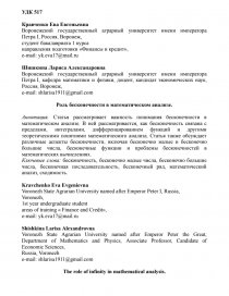 Ключевые слова: бесконечность, бесконечно малые числа, бесконечно большие числа, бесконечная последовательность, бесконечный ряд, математический анализ, сходимость.
