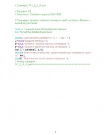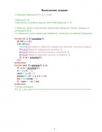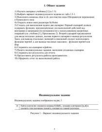 5) Создать для выполнения задачи два сценария. Первый сценарий должен содержать функции, предназначенные для выполнений действий над векторами и матрицами (по возможности) с использованием матричных операций (см. учебник [1], Приложение 2). Второй сценарий предназначен для ввода исходных данных, вызова первого сценария и вывода результатов. Здесь для вывода отдельных значений и пояснений следует использовать функцию mprintf, а для вывода числовых массивов – функции mprintf или disp.