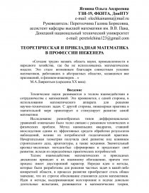 ТЕОРЕТИЧЕСКАЯ И ПРИКЛАДНАЯ МАТЕМАТИКА В ПРОФЕССИИ ИНЖЕНЕРА