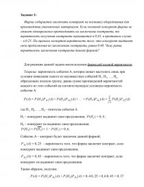 Фирма собирается заключить контракт на поставку оборудования для производства упаковочных материалов. Если основной конкурент фирмы не станет одновременно претендовать на заключение контракта, то вероятность получения контракта оценивается в 0,45; в противном случае – в 0,25. По оценкам экспертов вероятность того, что конкурент выдвинет свои предложения по заключению контракта, равна 0,40. Чему равна вероятность заключения контракта данной фирмой?