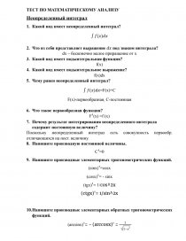 ТЕСТ ПО МАТЕМАТИЧЕСКОМУ АНАЛИЗУ