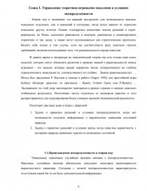 на тему: « Управление теоретико-игровыми моделями в условиях неопределенности и риска»