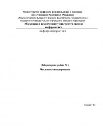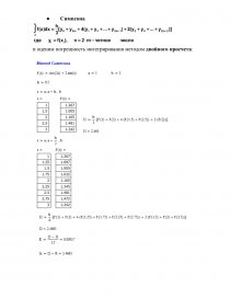 - методы интегрирования для выполнения п. 3 – средних прямоугольников, трапеций, Симпсона;