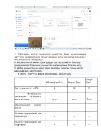 Орындалатын тапсырма – бұлттық файлдарды сақтау қызметтерін талдау және әрбір қызметтің мүмкіндіктерін зерттеу.