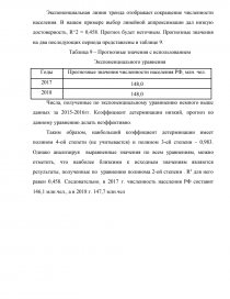 Данные таблицы 2 показывают, что точнее всего динамику численности населения Российской Федерации с 1987-2016 гг. отражает полиноминальная линия тренда 4 степени, так как величина достоверной аппроксимации (R^2) имеет наибольшее значение 0,984.